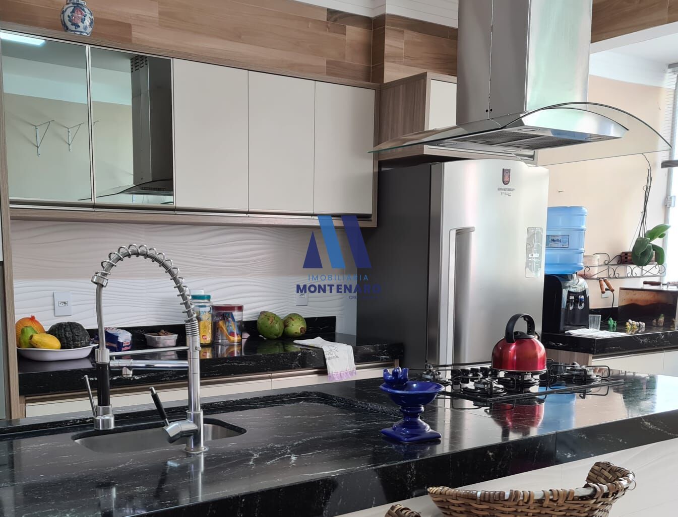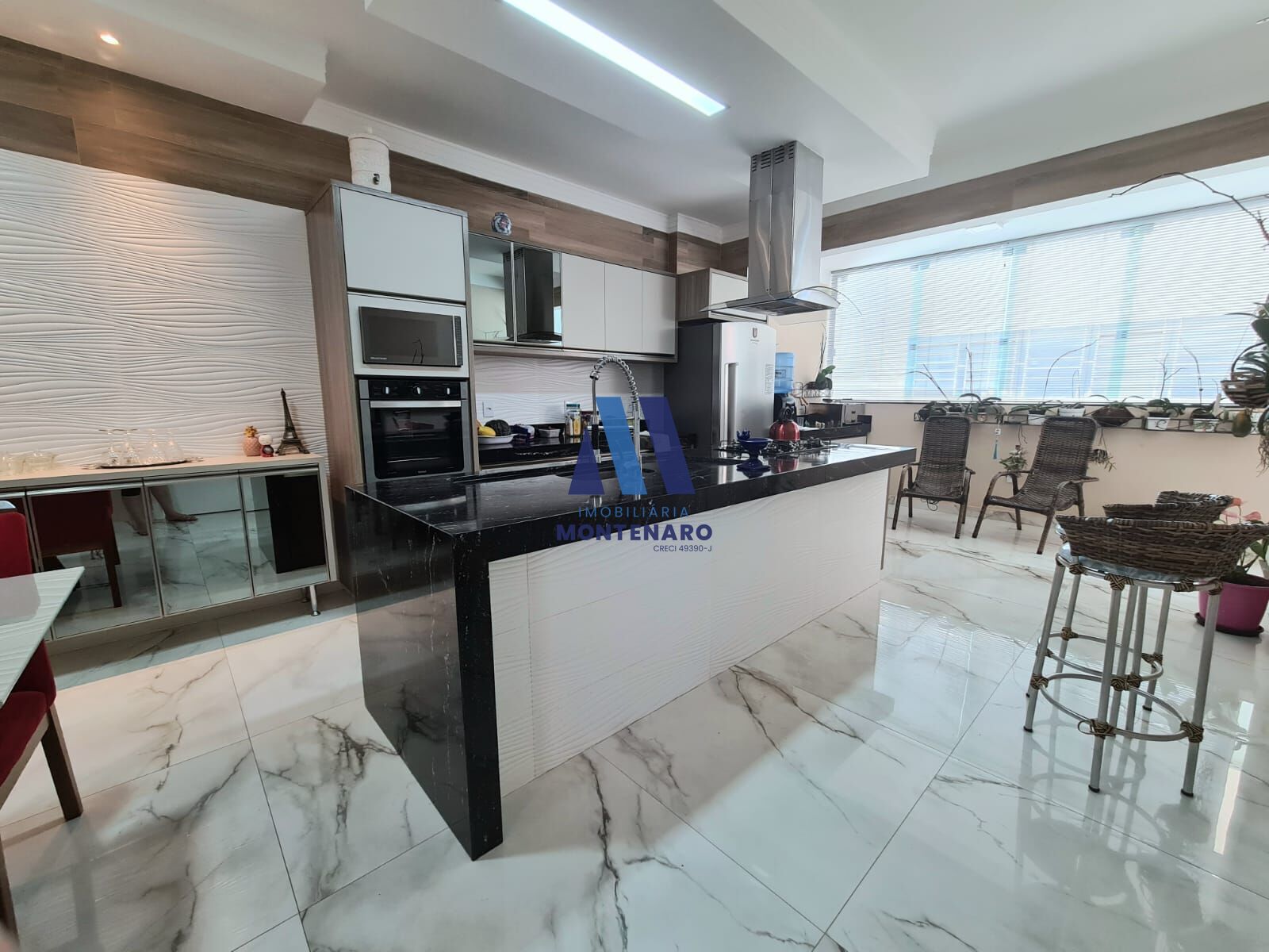 - Cozinha planejada com ilha, coifa, forno e micro-ondas embutido