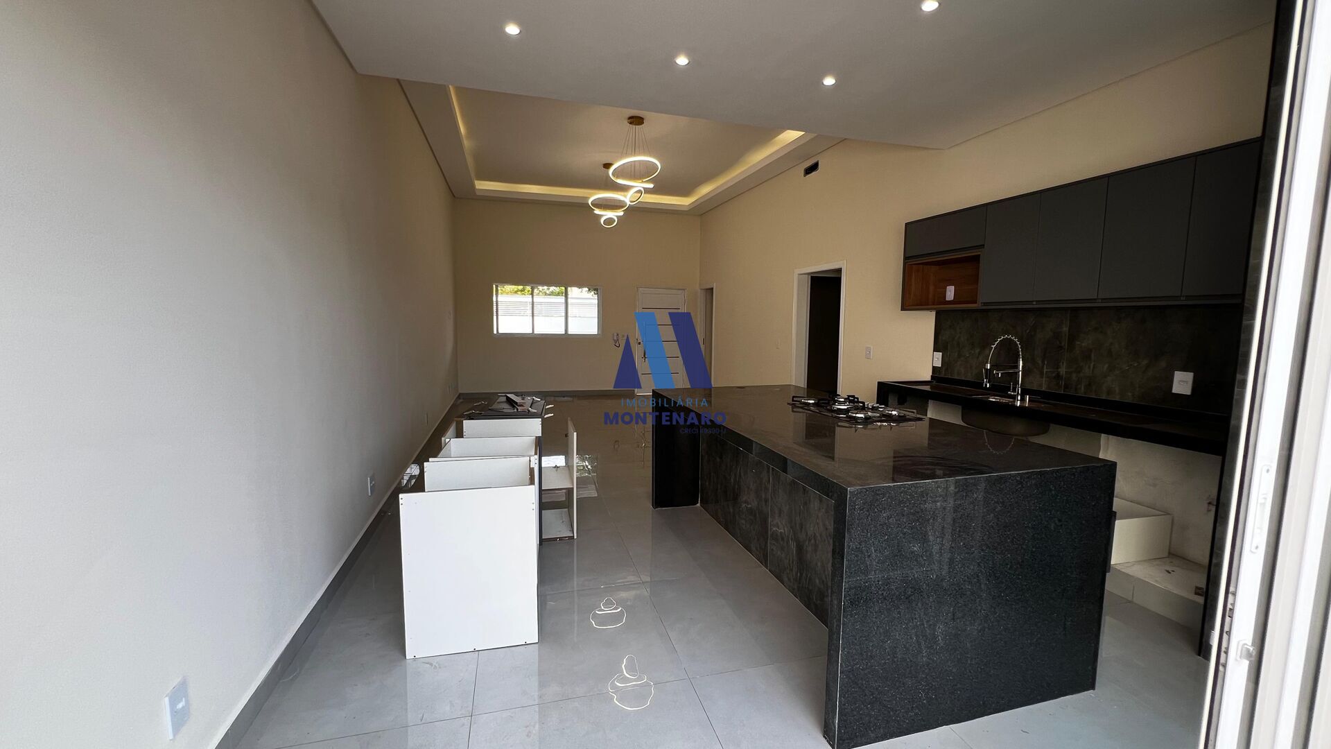 - Sala ampla para dois ambientes com pé direito alto de 4mts